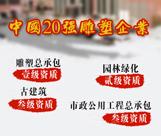 河北鑫特園林建筑雕塑有限公司成立于2002年,是中國雕刻之鄉(xiāng)——曲陽縣的一家實(shí)力雄厚的大型雕塑公司,公司占地面積50000+平方米,年產(chǎn)值超過億元,具有雕塑總承包一級資質(zhì)、古建筑三級資質(zhì)、市政公用工程施工總承包三級資質(zhì)。